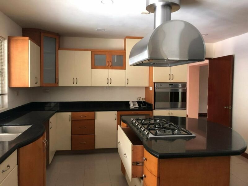 Se renta casa en la colonia Colorines, en Valle Oriente, San Pedro, Garza García. Ubicada en calle de poco tráfico, muy cerca del parque, de escuelas, super mercado y plazas comerciales. Primera planta: recibidor, baño de visitas, amplia sala comedor con mueble de bar y vista al jardín, cocina con cubierta de granito, con una isla con estufa y campana, amplia lavandería y cuarto de servicio completo, pasillo lateral. Segunda planta: sala de tv, recámara principal muy grande con hermosa vista, baño muy amplio, con doble lavabo, tina de hidromasaje, clóset vestidor. 2 recámaras secundarias con baño y clóset vestidor cada una. Toda la casa cuenta con piso de madera, las recámaras tienen alfombra. Hay un estudio o cuarto de juegos, que podría funcionar como recámara adicional, clóset de blancos. Clima central, cochera para 2 carros.