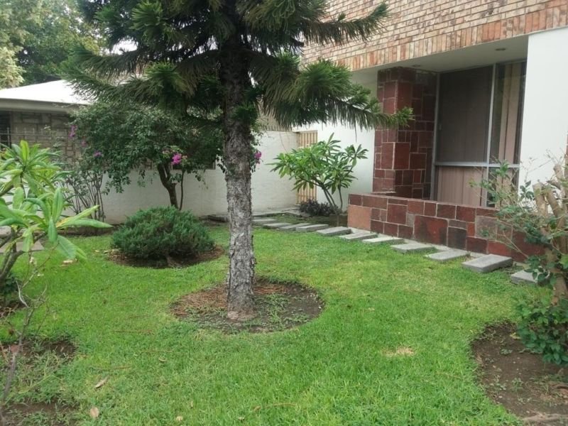 PLANTA BAJA: Entrada principal con puerta exterior de acceso en fierro, puerta principal en madera fina de acceso a la casa que conduce al recibidor principal, 1/2 baño de visitas, comedor muy amplio con conexión a antecomedor, sala muy amplia con conexión a terraza exterior abierta y de superficie muy amplia, cocina con cocineta equipada con acabados en granito vaciado y madera, 1 cuarto que puede ser utilizado como recámara con baño completo o bien como oficina despacho, 1 cuarto de servicio con baño completo, zinc, closets de blancos y espacio para bastones y abrigos en las áreas de recepción principal y escalera principal, cuarto de lavandería techada, pasillo lateral, cuarto de trickets con baño en exterior e incluye boiler, hermoso jardín exterior al frente, cochera techada y abierta automatizada para 4 autos, reja en fierro forjado en todo el frente del inmueble. La terraza en parte posterior y lateral derecho se conforma en forma de «L» de gran superficie, arbolada y piso a base de adoquin, barda perimetral a base de muro de block en el fondo, lateral izquierdo y lateral derecho, cuarto de bodega en un costado de la cochera.