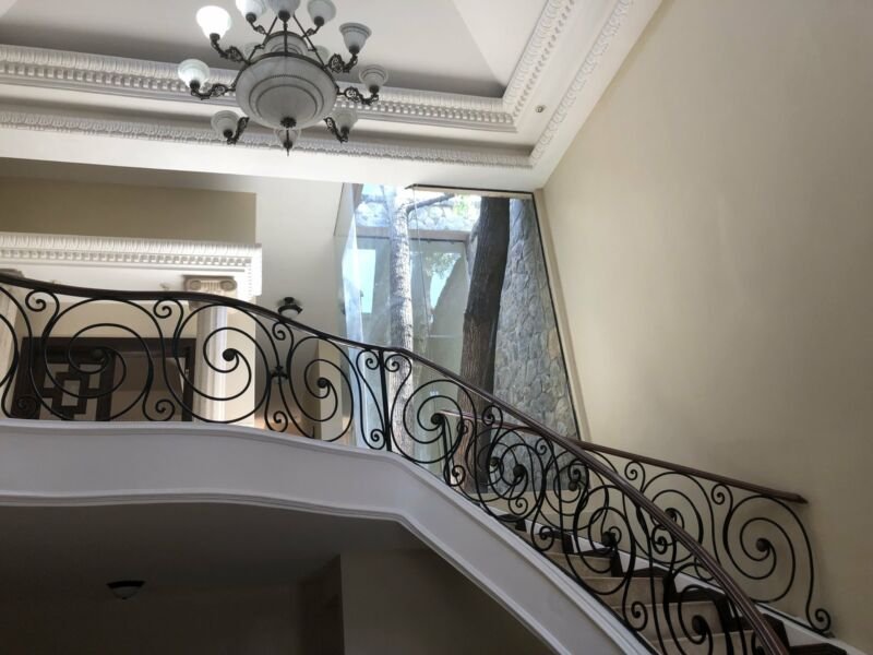 . Cuarto nivel: 2 recamaras con closet vestidor y baño completo cada una. Una de las recámaras con terraza. Cochera para dos carros con opción a 3, pasillo lateral y cuarto de servicio con baño. Clima central, pisos de mármol, cubierta de granito en baños, finos acabados.