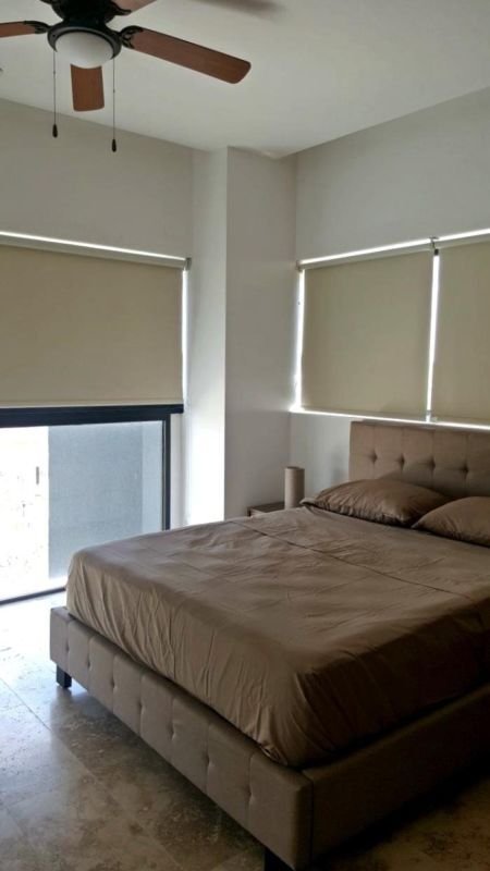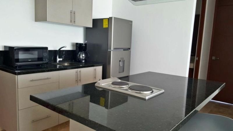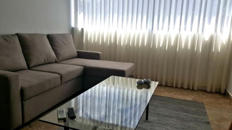 Con vista a la Avenida. Características: • 1 Habitación con cama Queen Size • 1 habitación con futón • 1 ½ baños • Cocina equipada con estufa, microondas, cafetera y refrigerador. • Sala con televisión. Características especiales • Aire acondicionado en todas las áreas. • Cortinas en todas las áreas. • Internet • Cable • Secadora de cabello • Plancha Características del edificio • Estacionamiento techado para 2 autos. • Acceso con huella al elevador. • Área común de lavado de ropa. • Acceso a restaurantes. • Vigilancia 24 hrs. El precio incluye mantenimiento, cable, internet y agua.