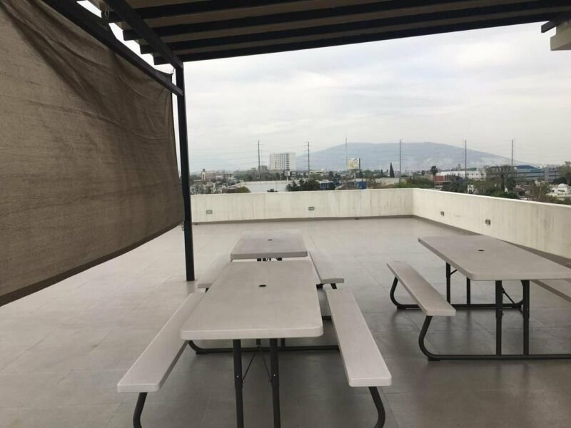 Oficina terminada en edificio tipo Boutique, de 50 M2 con baño y balcón, 3 cajones de estacionamiento privados, Terraza en área común, vigilancia, $18,500 incluye mantenimiento y vigilancia. Esta en tercer piso y cuenta con elevador. A estrenar.