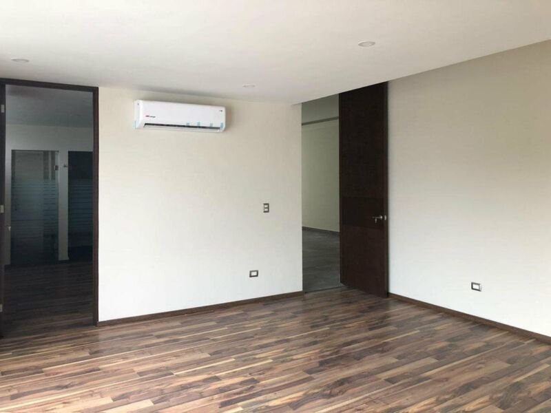 Ubicada en la colonia Del Valle, 450 m2 de terreno y 630 m2 de construcción, desarrollada en 2 niveles, consta de 3 recamaras cada una con baño completo y vestidor, área de sala, comedor, cocina integral, lavandería, cuarto de servicio con baño, muro llorón, alberca, dos cocheras dobles con espacio adicional para motos. Acabados contemporáneos, pisos de mármol Santo Tomas, tiene cubierta de granito y vidrio templado en baños, porcelanato en pisos, carpintería de pino chapeado de nogal y puertas de nogal.