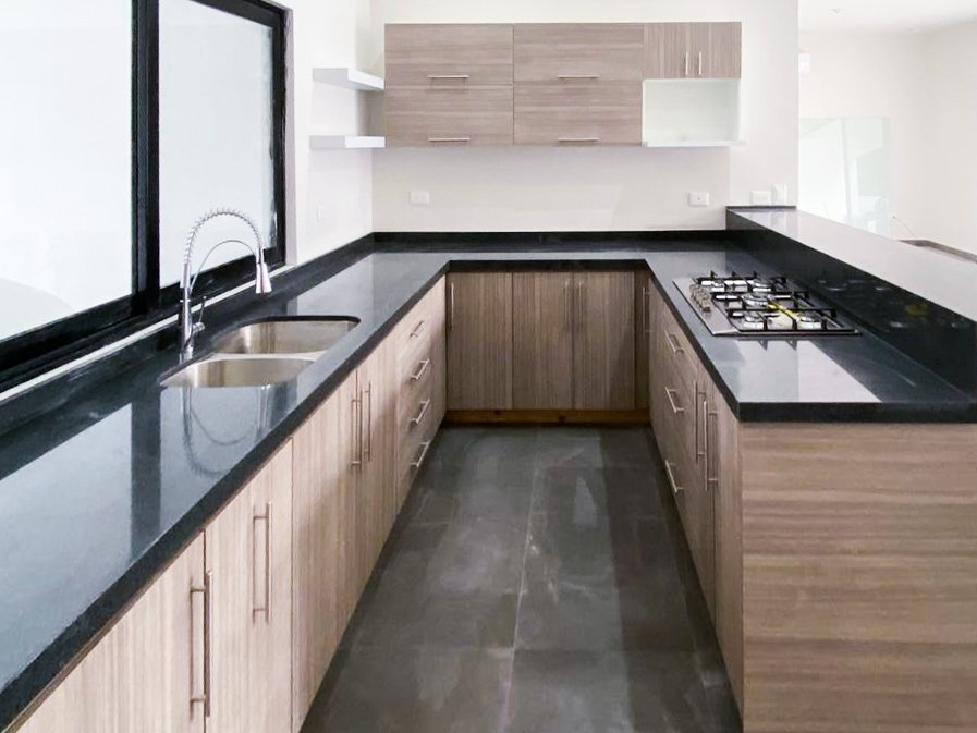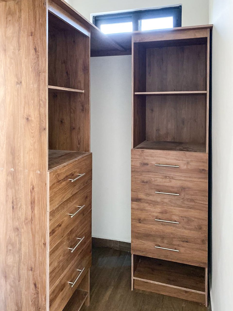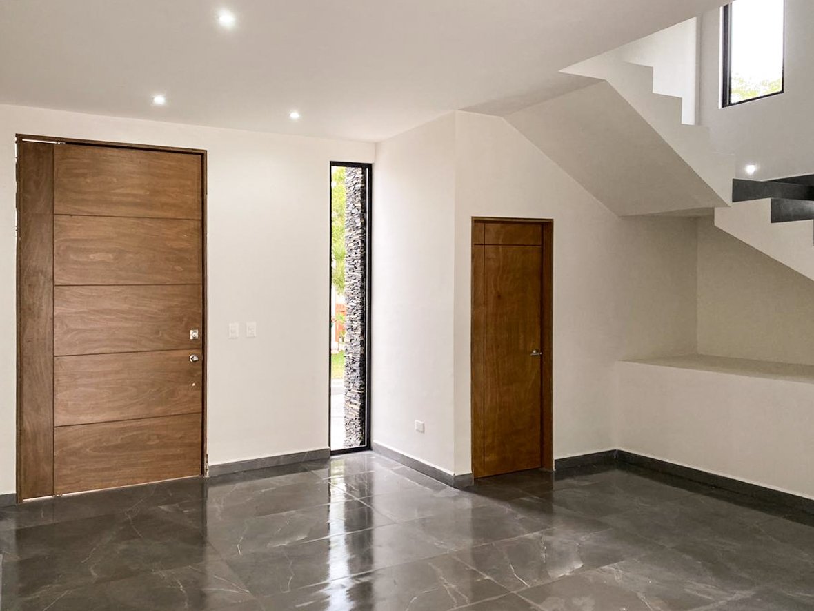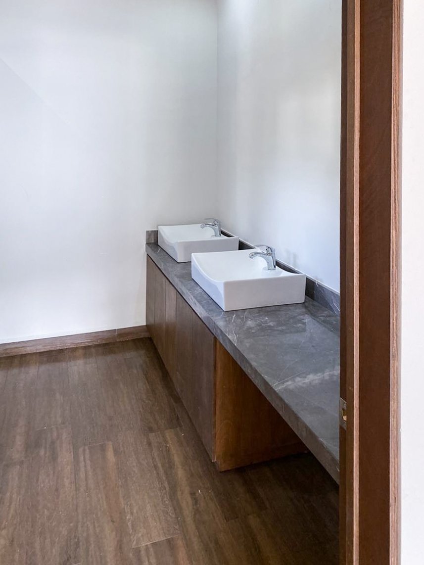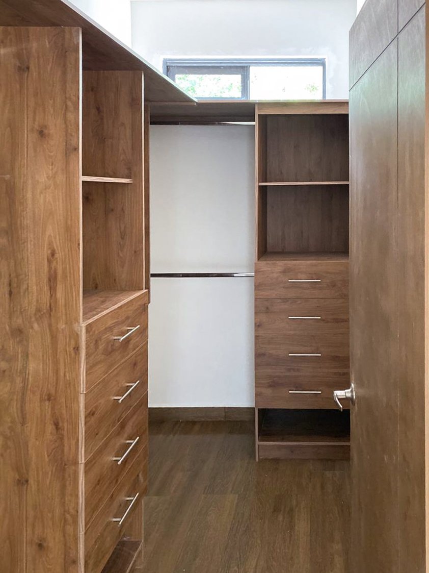 También cuenta con sala-comedor,recámara principal con terraza techada, baño y vestidor, dos recámaras para niños con baño y vestidor, sala de TV, oficina, lavabos con lavanetas y cubiertas de mármol,clósets, minisplits, canceles de baño y pasamanos de cristal, ventanas Duo Vent, estufa de parrilla, lavandería,cuarto de servicio, bodega en planta baja.