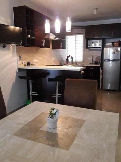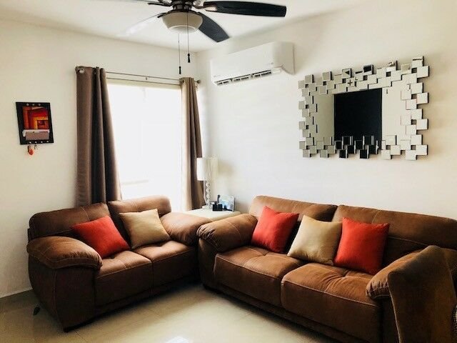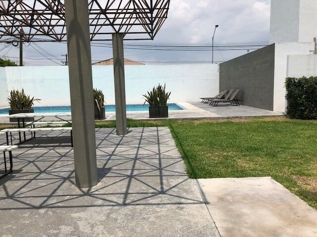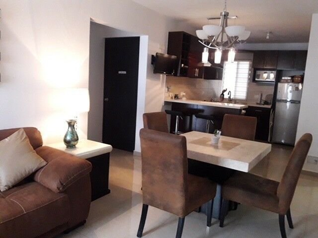 Confortable departamento listo para habitarse, piso porcelanato, cocina integral, persianas, candileria, boiler de paso, abanicos de techo, caseta de vigilancia, con area social alberca y palapa, fáciles accesos.