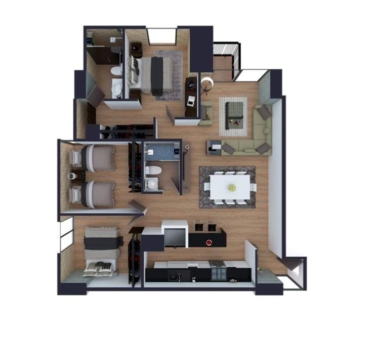 Departamentos • 93m2 • 3 Recámara(s) • 2 Baño(s)