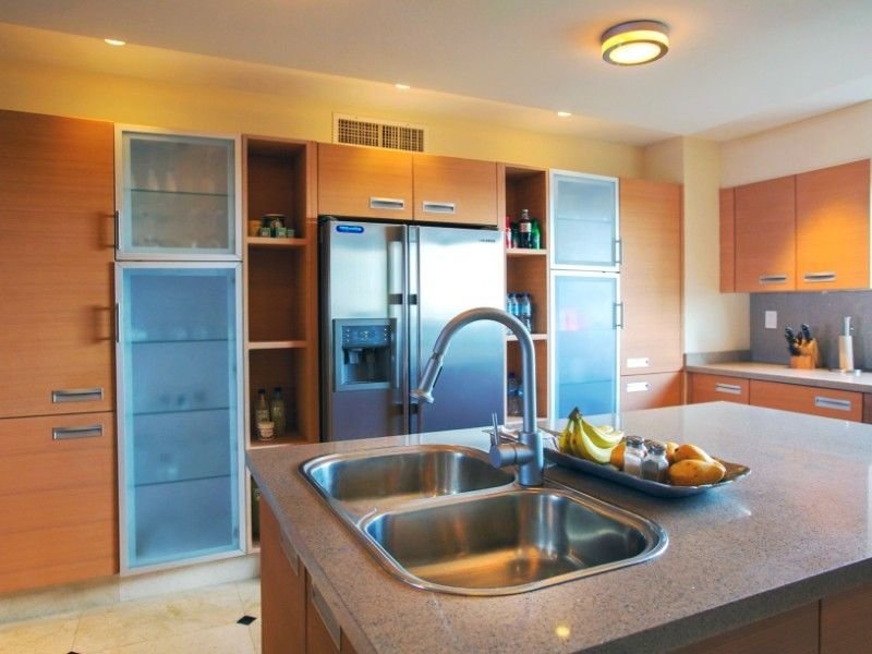 Cuenta con 1 habitación principal con closet vestidor y 2 habitaciones adicionales, 3 1/2 baños, cocina con meseta central y completamente equipada, sala, comedor. También con balcones con una espectacular vista a las intensas azules aguas de Cozumel.