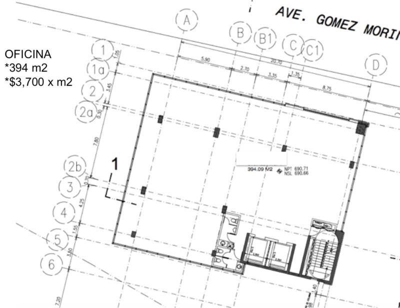 Piso de oficina en venta en Torre Kerkus ubicado en Av. Gómez Morín. Son 394 m2, se puede vender completo o a la mitad.