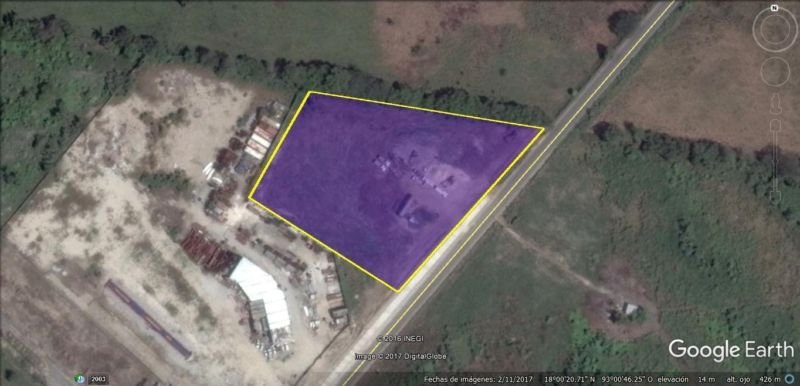 Terreno en venta a orilla de carretera con mas de 130 mts de frente entre El Country y la carretera Villahermosa-Cárdenas. Gran ubicación comercial para desarrollo de naves industriales, gasolinera, bodegas, parque industrial, etc..