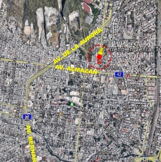 Excelente y Estratégico Terreno Bardeado completamente de 3,200 m2 con 2 ESQUINAS y muchísimo frente a calles (136 mts.); se localiza a solo 1 (una) cuadra de la AV. ALMAZAN (Col. Topo Chico, en el municipio de Monterrey, N.L.).